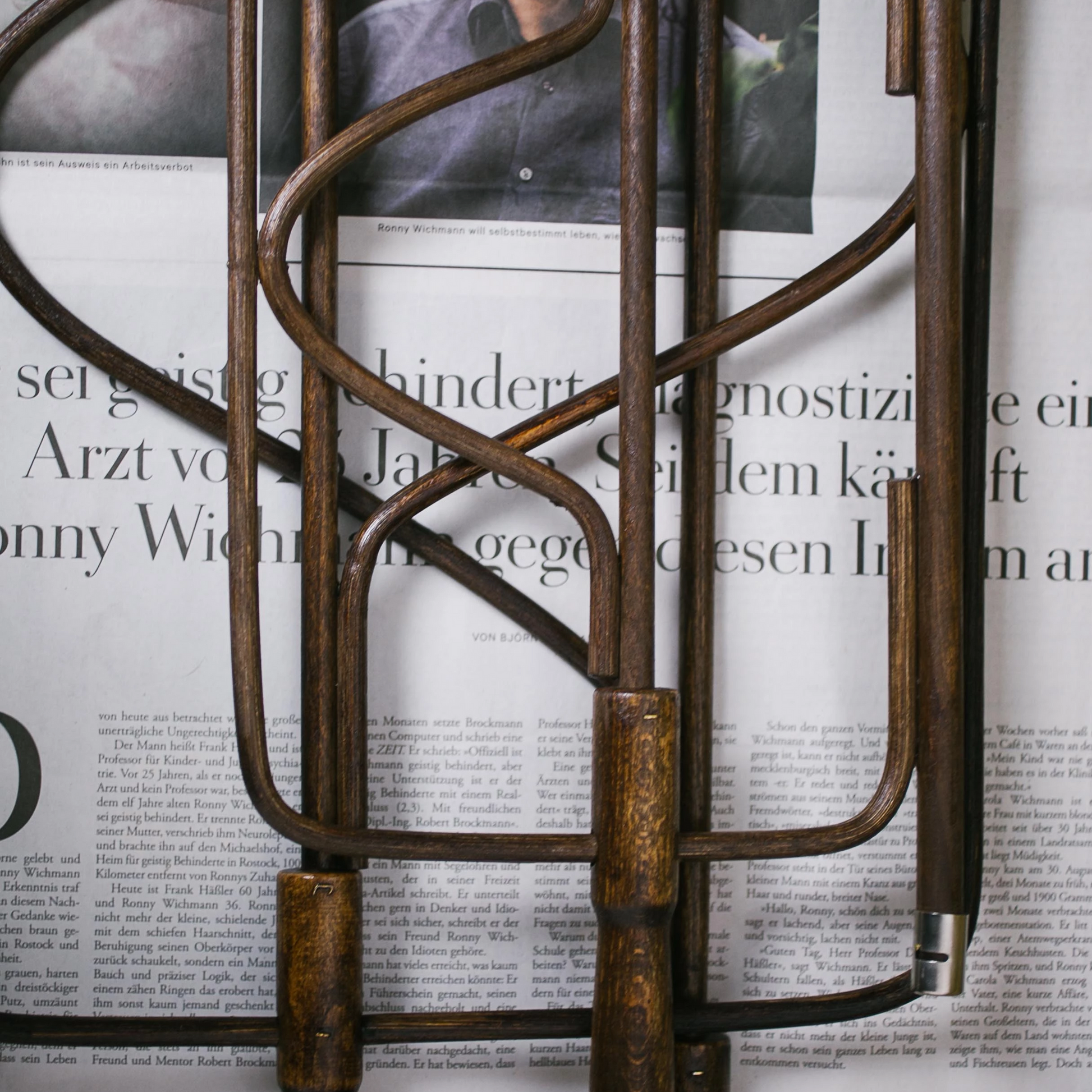 A classic newspaper rack from a Viennese café, designed for better reading time.