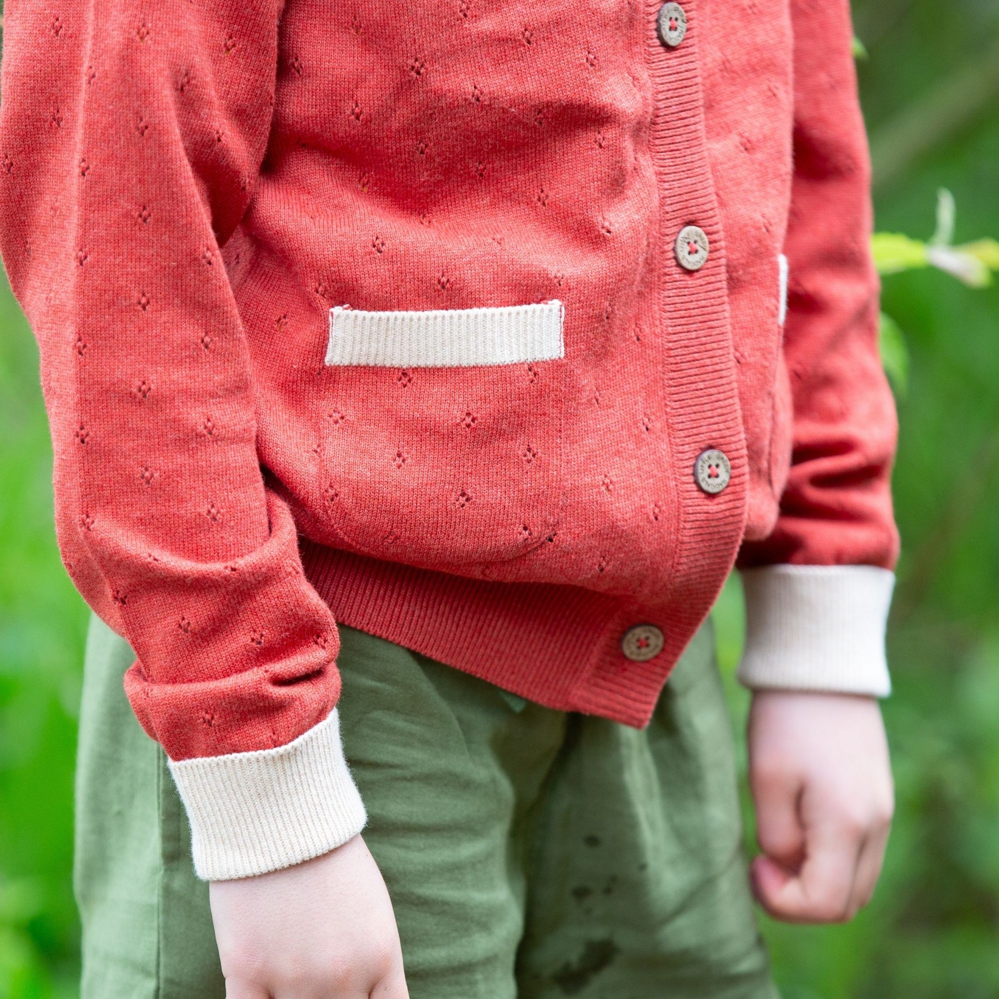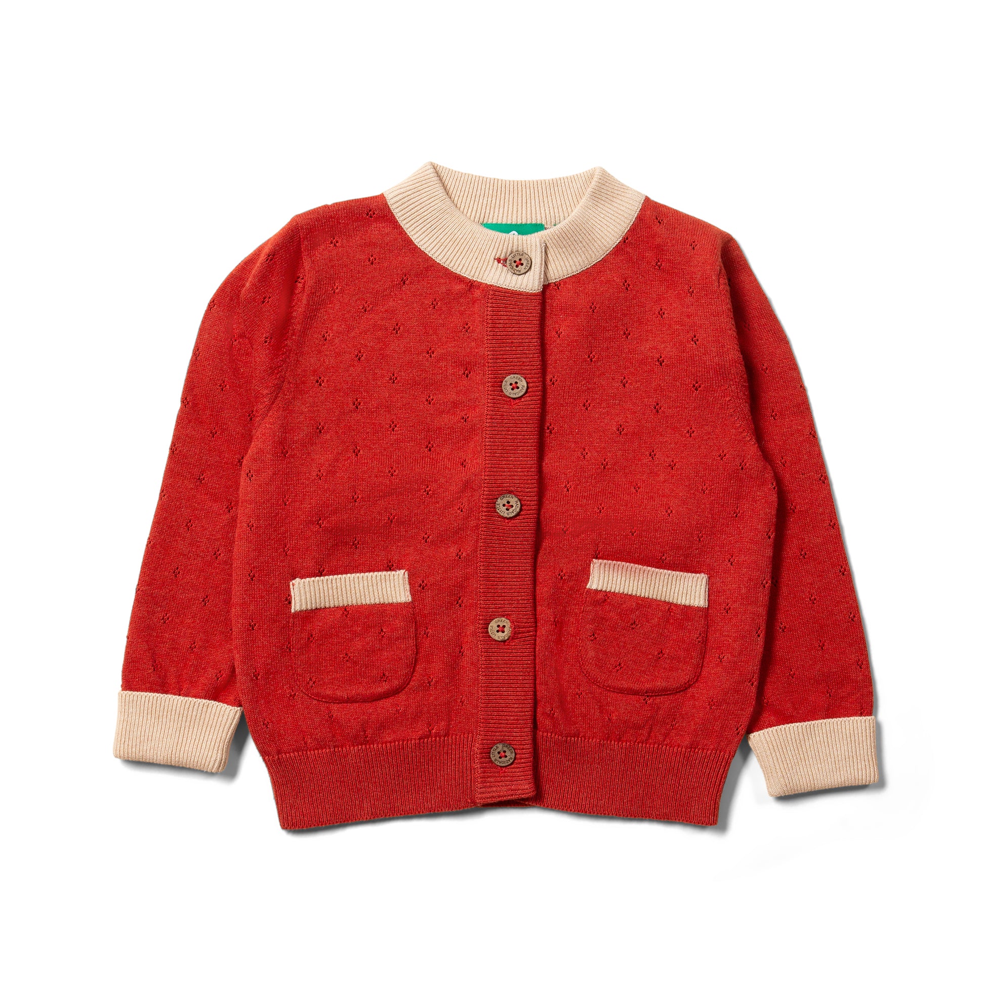 預購童裝 ☕︎ 紅桔 小花鏤空針織外套 |Little Green Radicals 有機棉