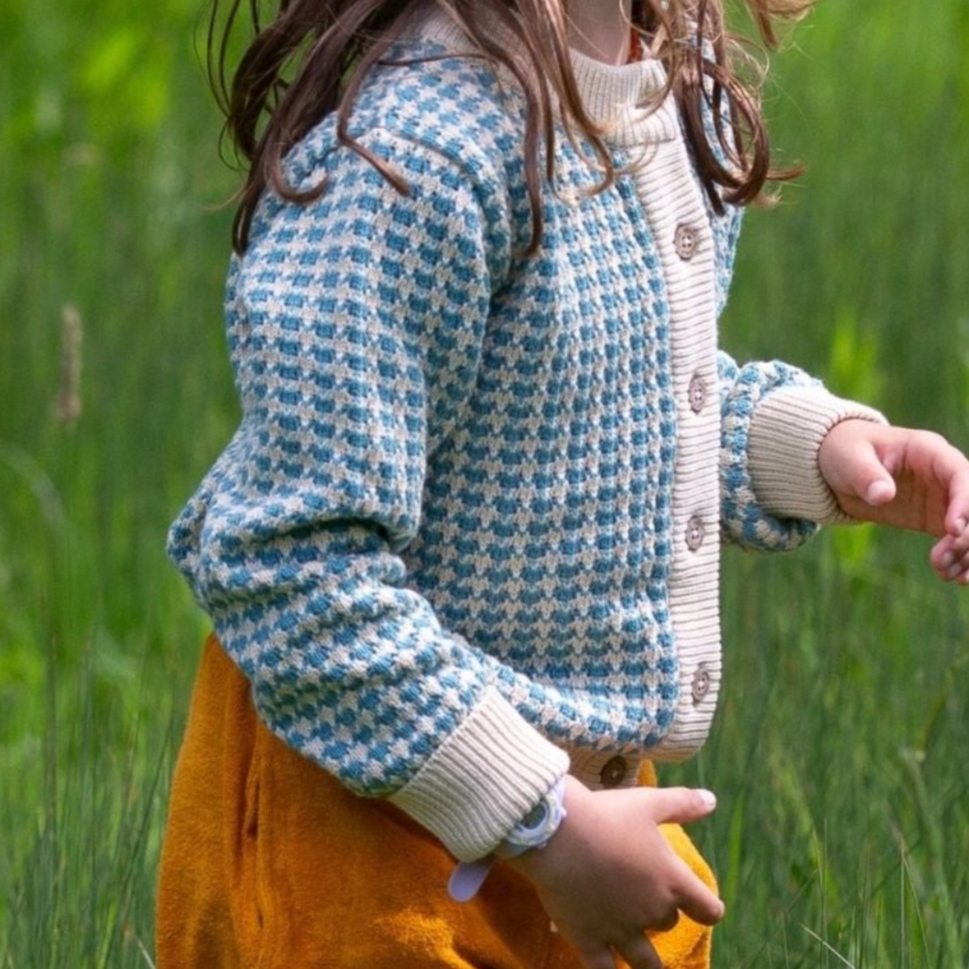 預購童裝 ☕︎ 天空藍 浮雕織紋 針織外套 |Little Green Radicals 有機棉